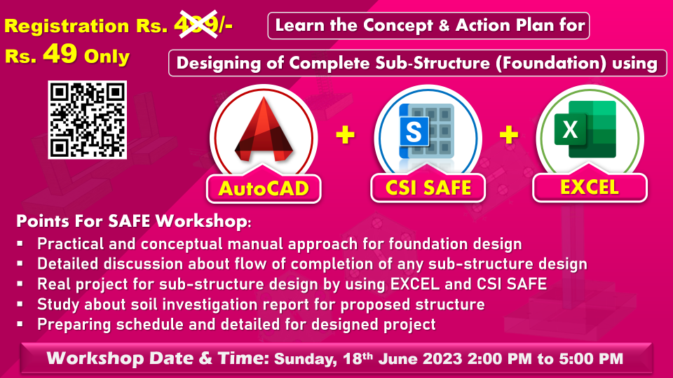 This action-packed workshop will teach you how to do Modeling, Analysis, Design, Scheduling & Detailing. This workshop will make you master of sub-structure design.